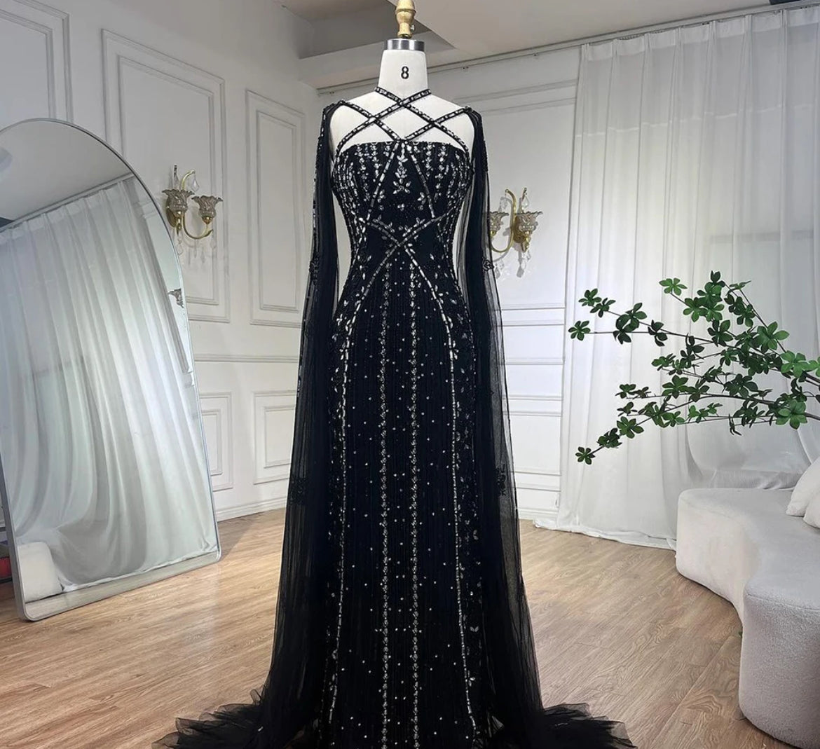 Detachable sheer cape for dramatic flair